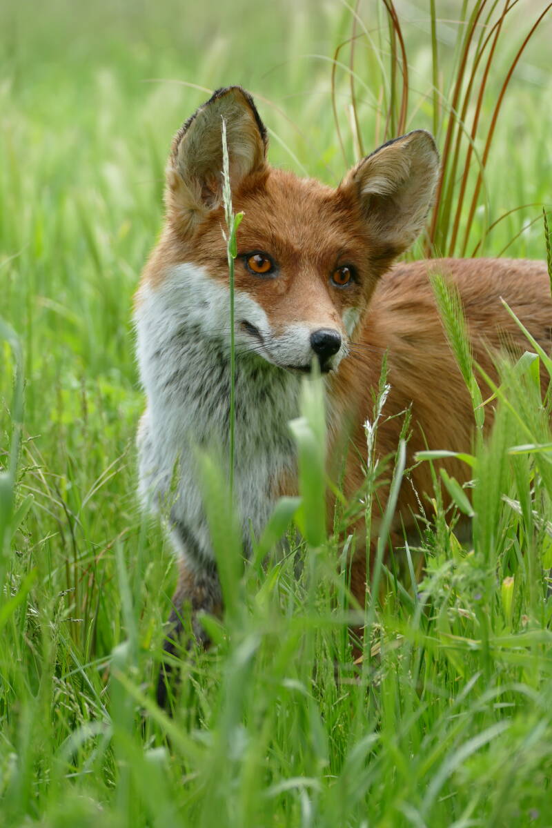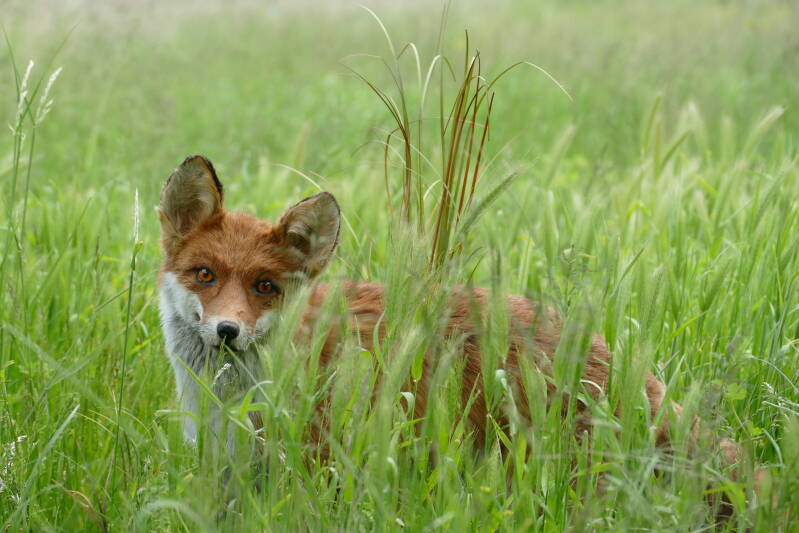 De net afgewerkte vos op de dijk in het gras gezet om als model te dienen. Geen probleem met weglopen en bewegen, ideaal! 🙂 Een hele kunst minder, dat wel, maar leuk om te zien!